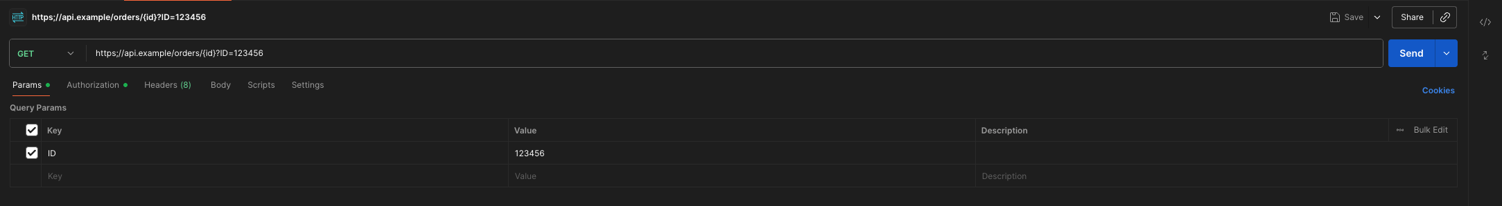 - In the URL bar, add the BaseURL and add the endpoint to the BaseUrl. E.g. [https://api.example.com/orders/id/